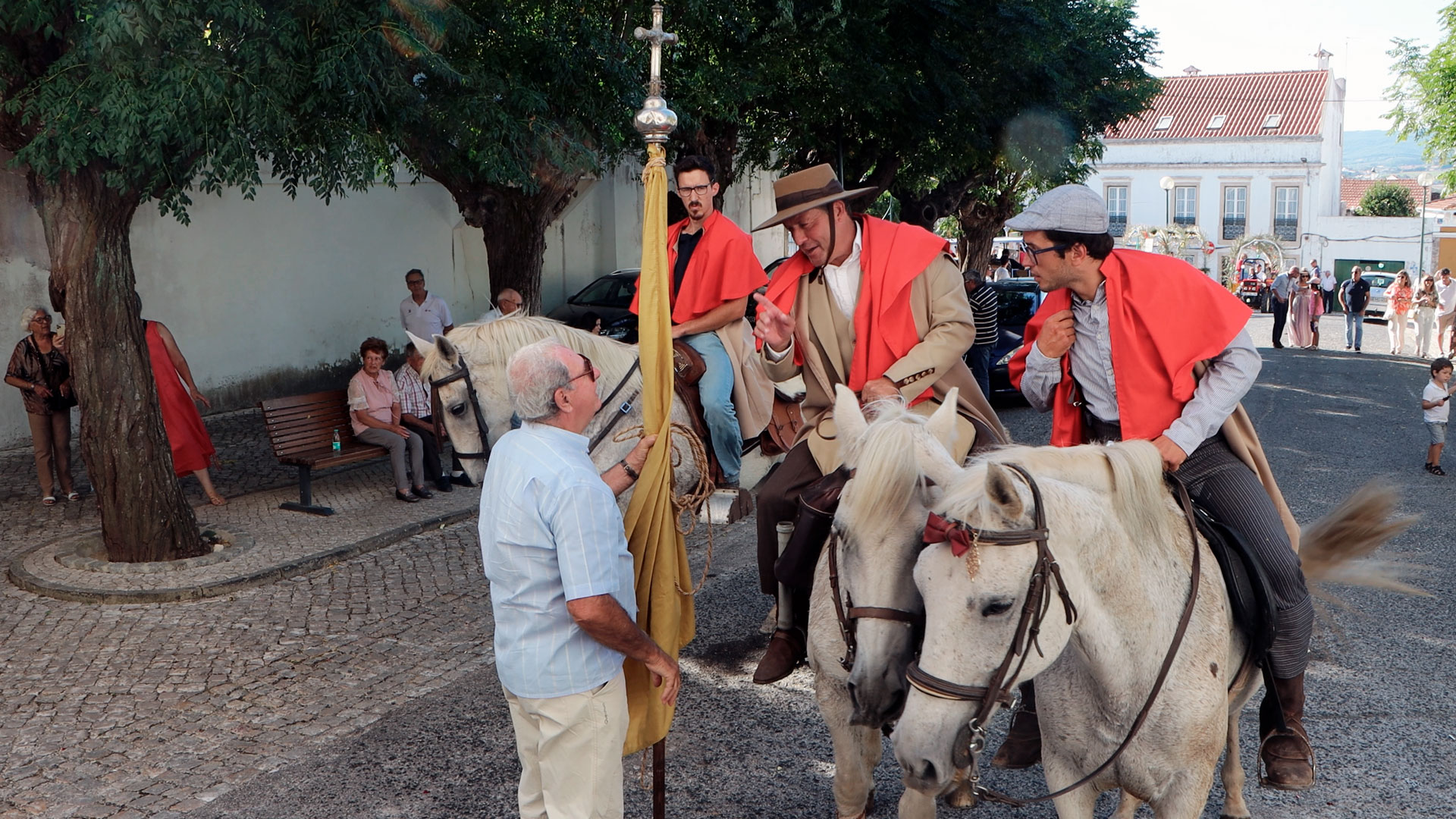 A chegada a Olhalvo tem hora marcada, por volta das quatro da tarde, e é um dos pontos altos do regresso. No Cruzeiro, à entrada de Olhalvo, organiza-se uma procissão até à Igreja de Nossa Senhora da Encarnação. A Banda e três cavalos aguardam para este momento simbólico. Como antigamente o Guião era transportado por cavalos, mantém-se essa tradição.